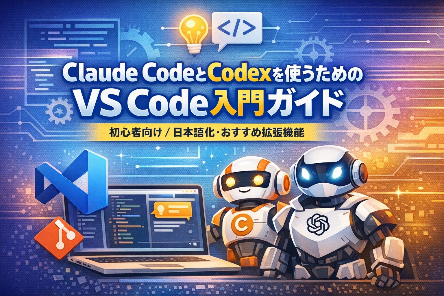 特にこの記事では、VS Codeのインストール、日本語化設定、Gitの必要性、Claude CodeとCodexの導入方法、さらに最初に入れておくと便利な拡張機能までまとめて解説します。